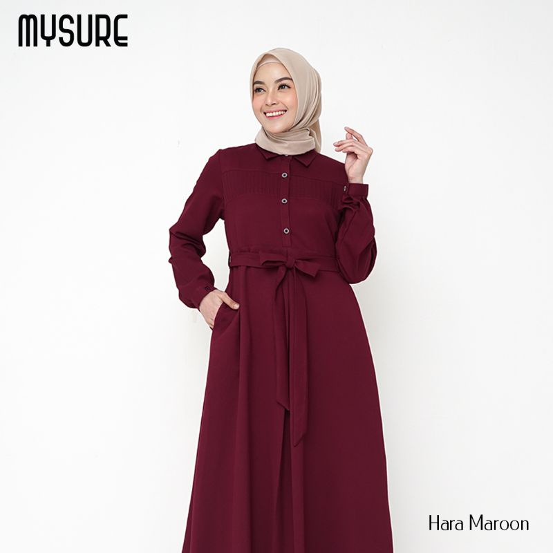 Bila kamu tanya, baju pesta merah maroon cocok dengan jilbab warna apa? baju warna maroon cocok dengan jilbab. Ciptakan gaya feminin dengan pleated dress warna merah maroon.